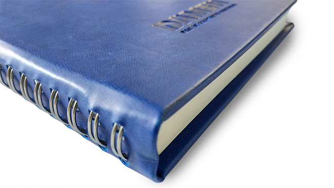 Coperte flexibile din piele ecologică superioară, cusute perimetral, cu buzunar, legate cu spiră metalică ascunsă
